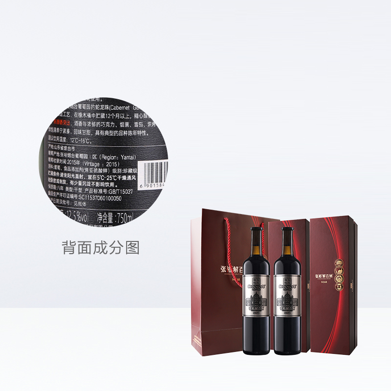 张裕红酒第九代珍藏级解百纳干红葡萄酒750mlx2瓶礼盒装节日送礼