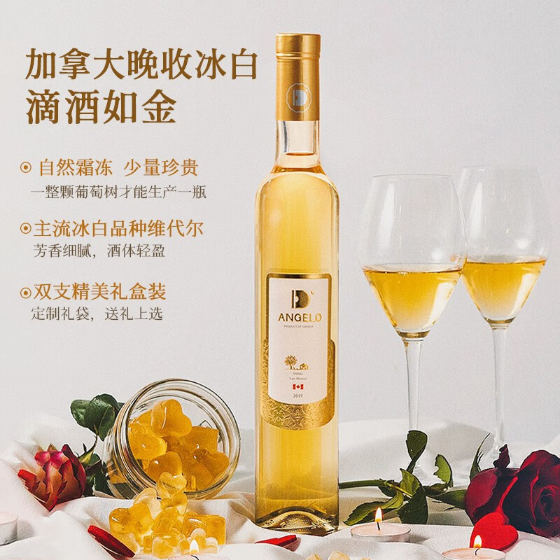 加拿大进口晚收甜白葡萄酒甜型白葡萄酒冰酒双支